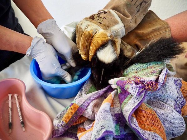 Striped Skunk Receives Medical Treatment after it's Paw was Caught in Rat Trap