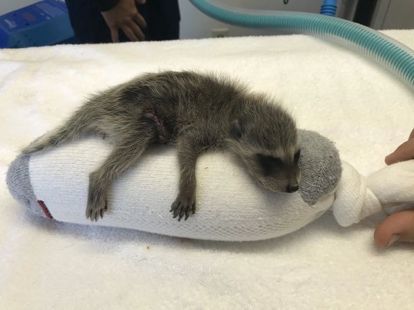 Opossum Rests on Warm Rice Sock in Wildlife Hospital
